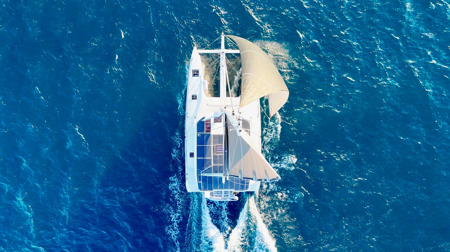 One of the things I heard most from visitors was that they were surprised with the view from the forward cockpit since it sits forward and at deck level rather than perched above like most other sailing catamarans. When you choose the U-shaped galley layout with the larger bulkhead windows, you gain an almost full-circle line of sight from both helm stations, making it easy to keep an eye on your sails, the foredeck, the salon, and the water around you all at the same time. And now with Dockmate available as an upgrade, you can step anywhere on the boat while docking and position yourself from the vantage point you’re most comfortable operating from. On a personal note, it took me only once docking this boat to get comfortable with the view from the cockpit.