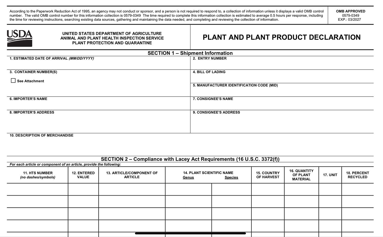 APHIS. “Filing a Lacey Act Declaration (PPQ Form 505).” https://www.aphis.usda.gov/plant-imports/file-lacey-act-declaration